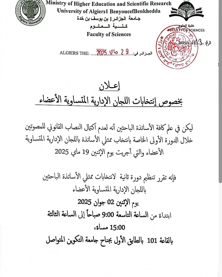إعلان بخصوص إنتخابات اللجان الإدارية المتساوية الأعضاء