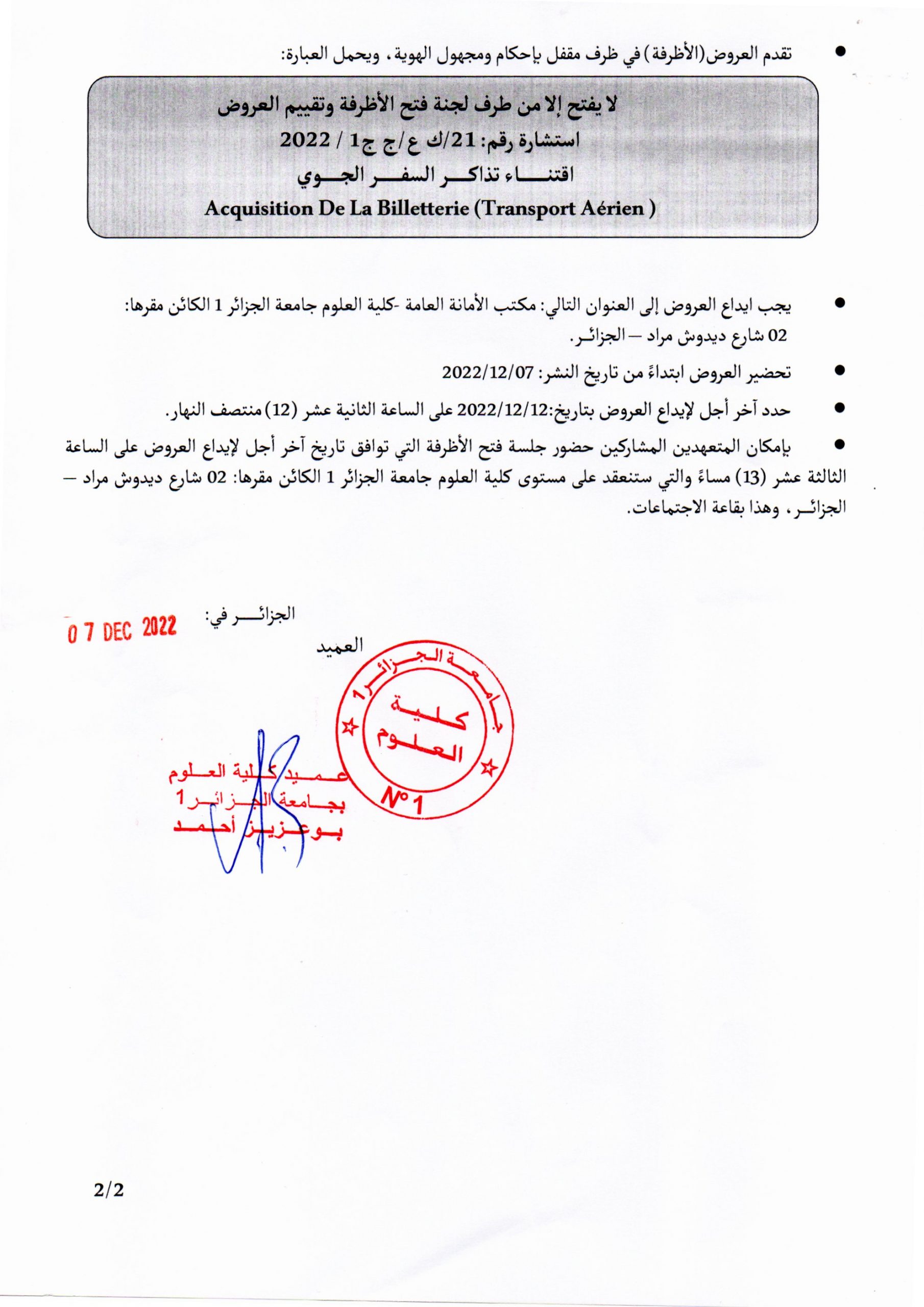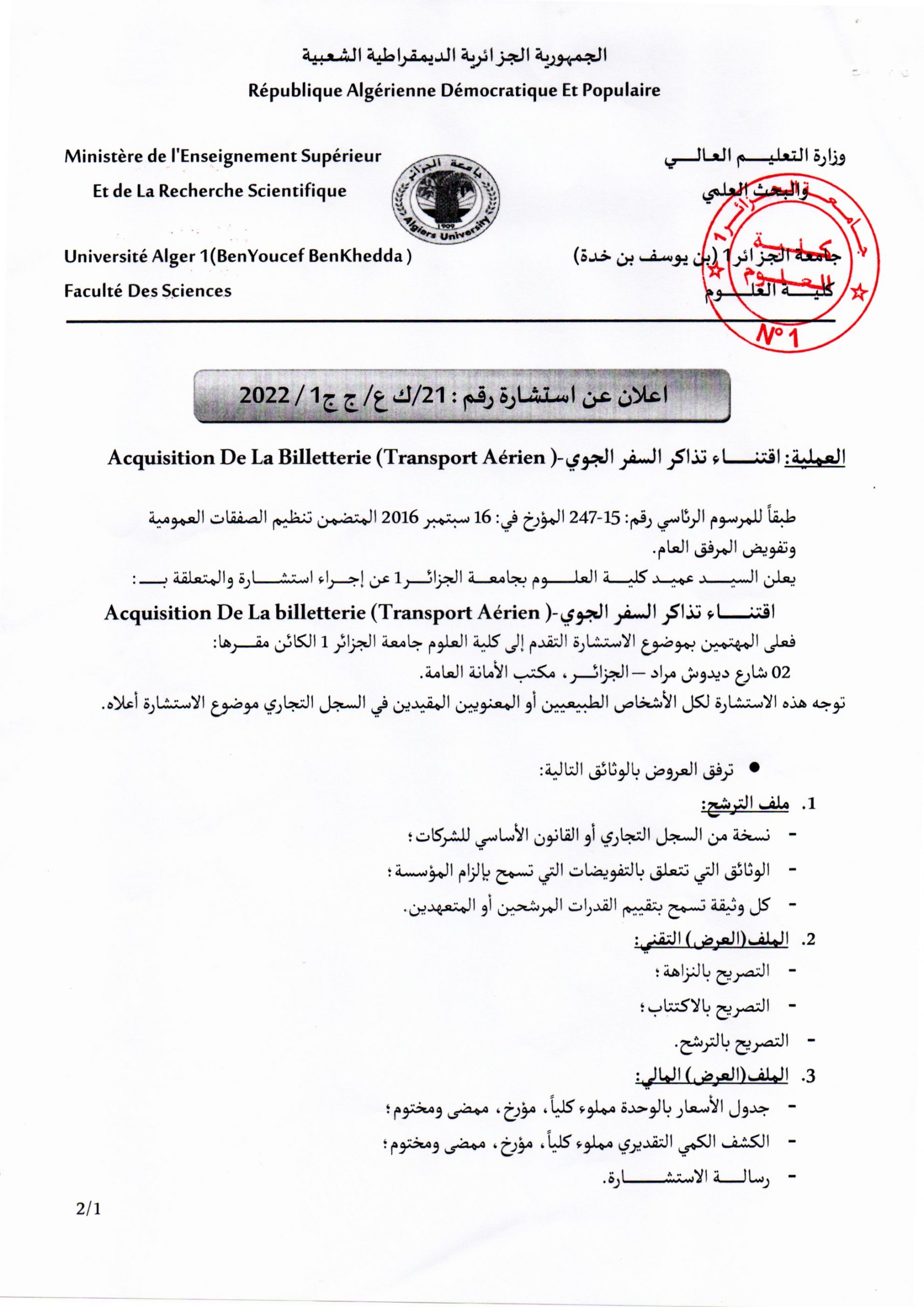 اعلان عن استشارة رقم: 21/ك ع/ ج ج 1/ 2022