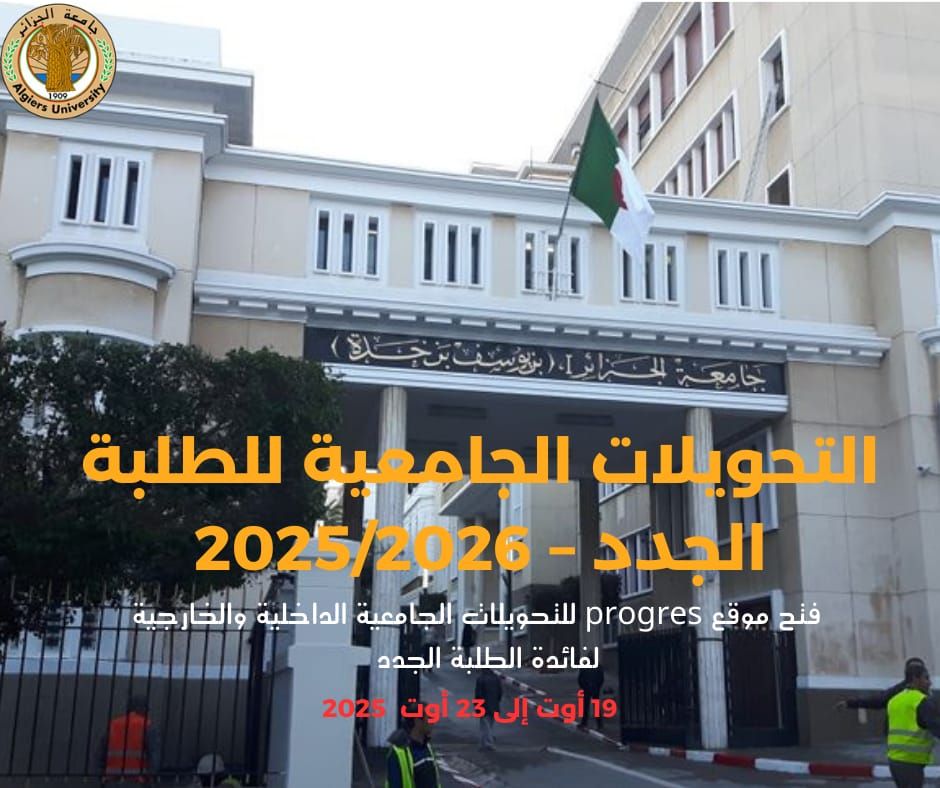 تعلن وزارة التعليم العالي عن فتح باب التحويلات الجامعية للسنة الجامع ية 2025/2026، وذلك وفق الرزنامة التالية : (بداية التحويلات من اليوم الثلاثاء19 أوت 2025)