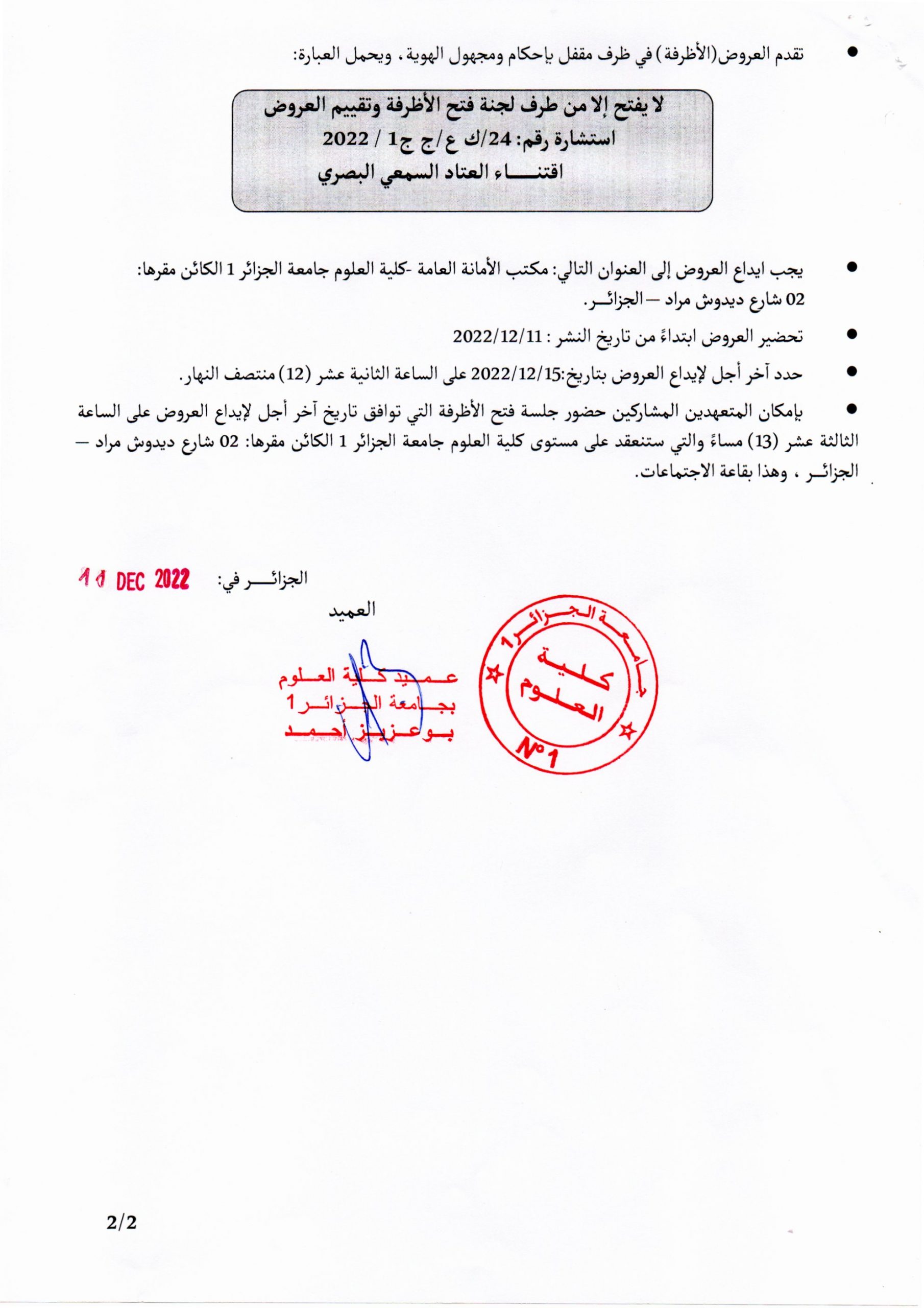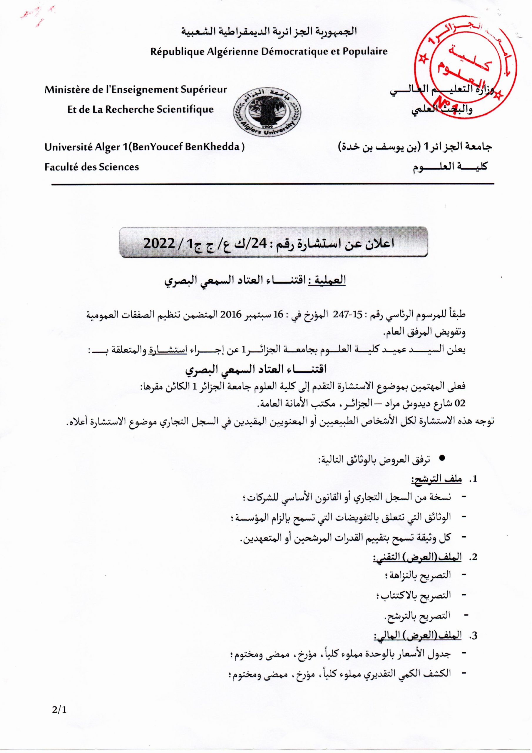 اعلان عن استشارة رقم: 24/ك ع/ ج ج 1/ 2022